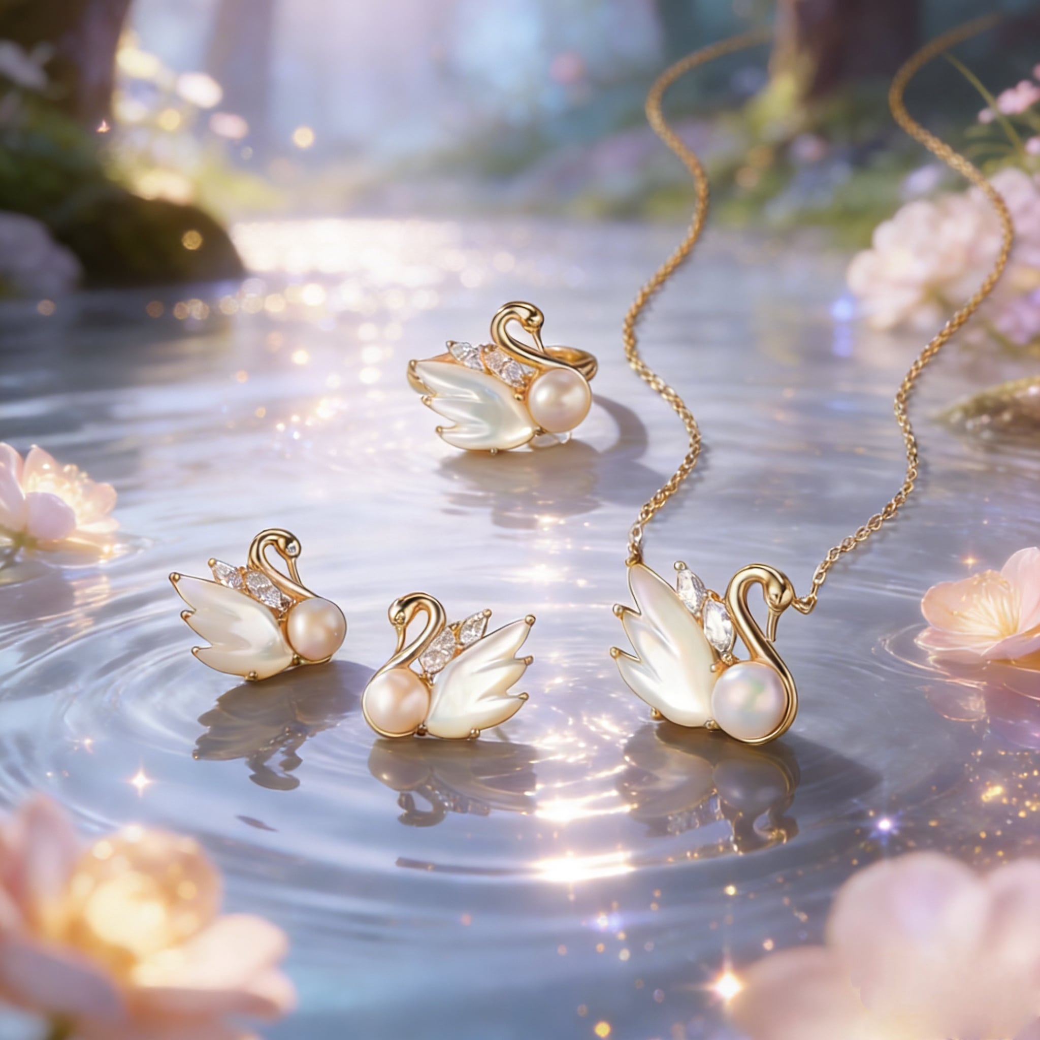 necklace|スワン三色|天然石|マラカイト|白シェル|ピンクシェル