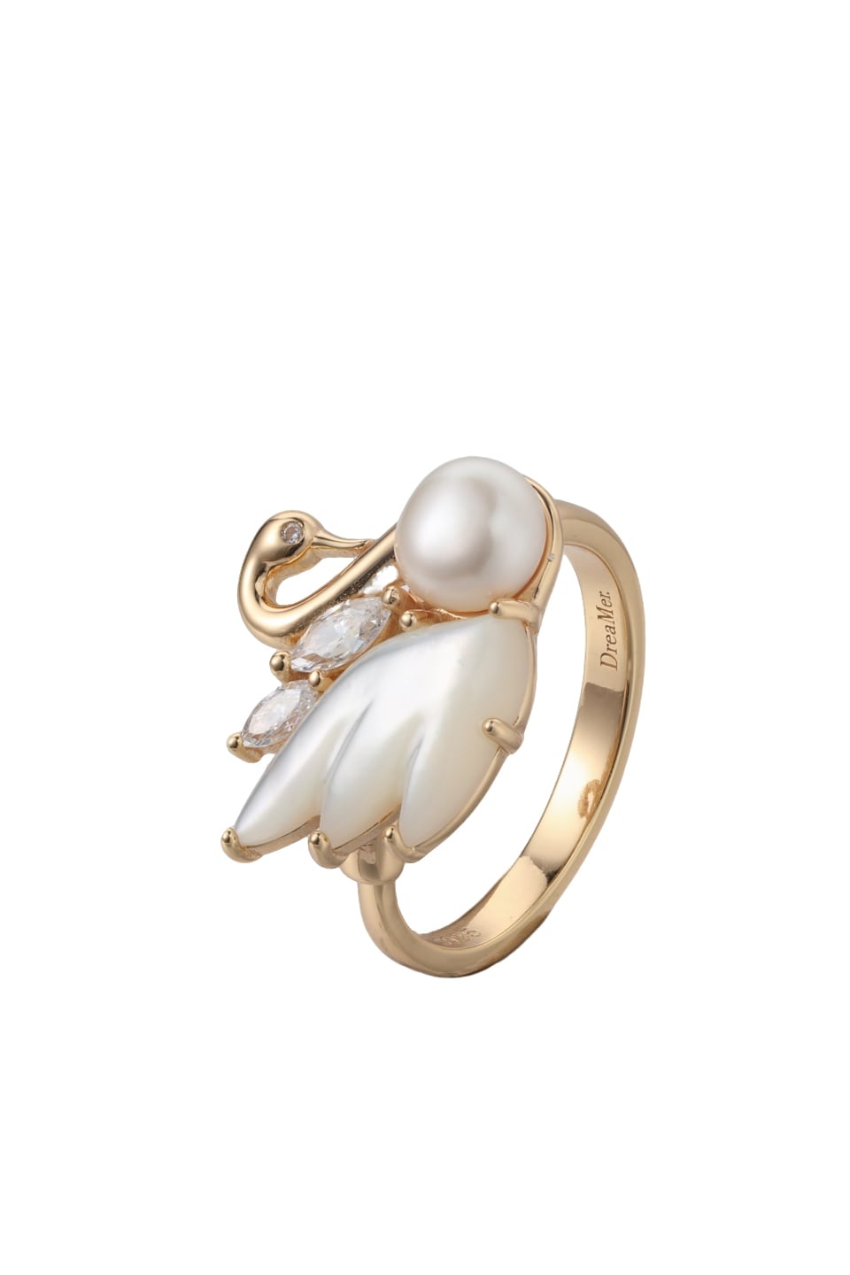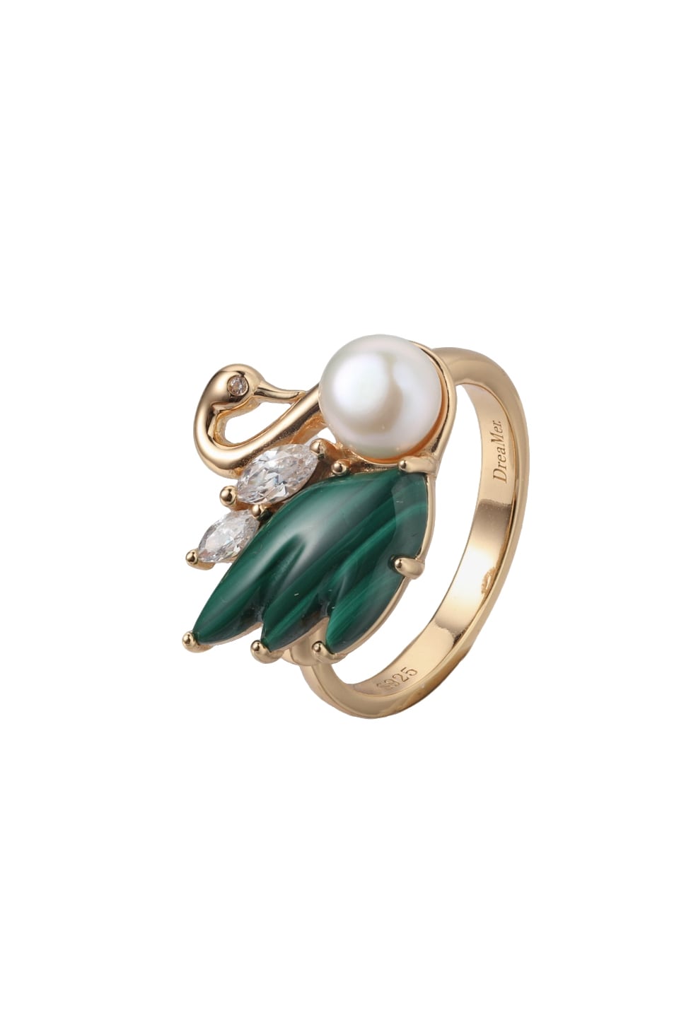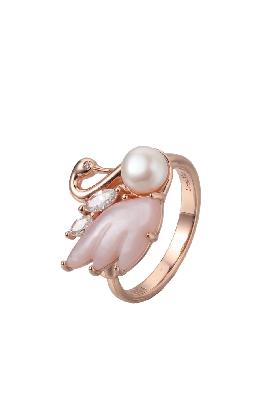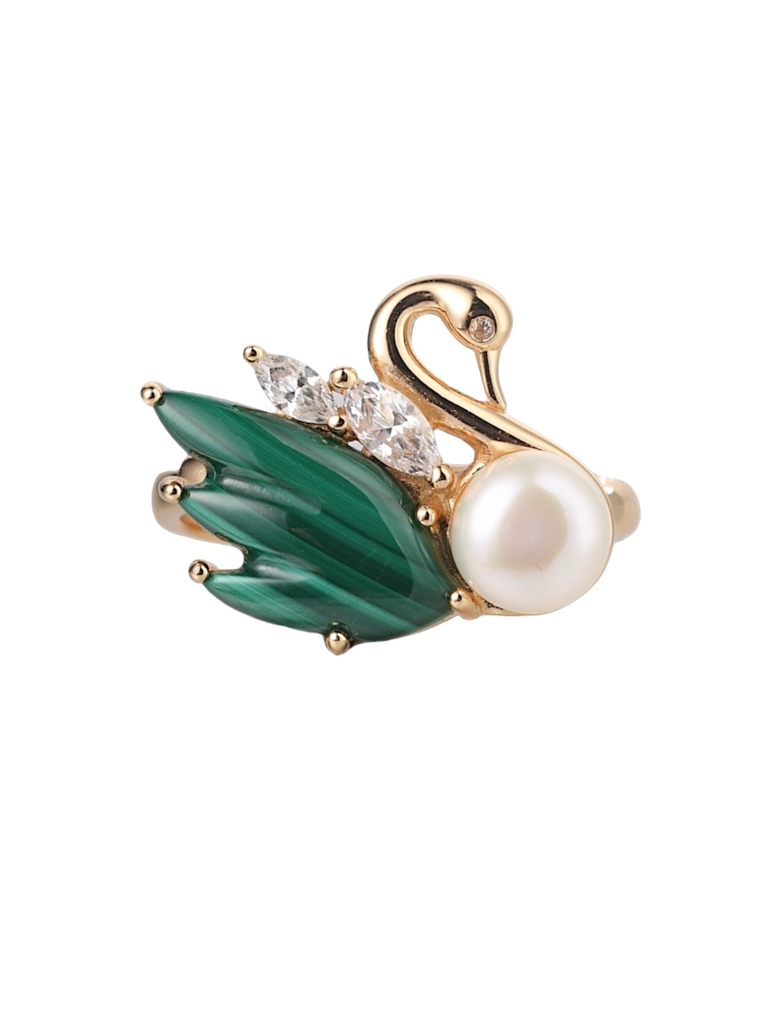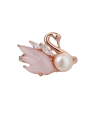 スワンリング 素材:Silver925、10kgp 、18kgpマラカイト、ホワイトシェル、白シェル、ピンクシェル、ジルコニア サイズ:フリー
